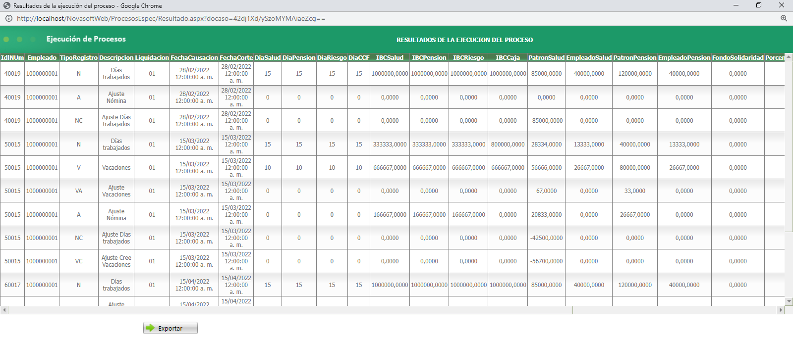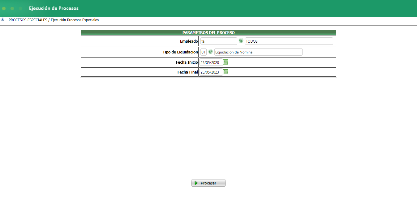 Este proceso permite consultar la información de seguridad social procesada en la liquidación para cada empleado, en un Período de corte determinado.