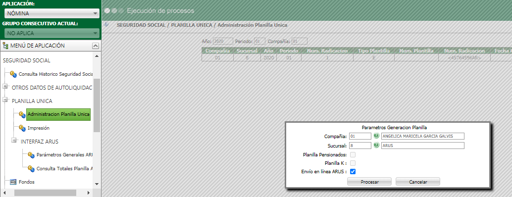 ADMINISTRAR PLANILLA ÚNICA